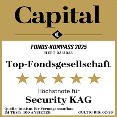 Security KAG ist dank eines daten- und wissenschaftsbasierten Investmentansatzes mit klarer Analyse und strukturiertem Risikomanagement ein führender Anbieter. Das Unternehmen wurde mehrfach ausgezeichnet und zählt zu den Top-Fonds-Gesellschaften im deutschsprachigen Raum. Es bietet eine breite Fondspalette aus Aktien-, Renten- und Mischfonds, die flexible Anlagemöglichkeiten ermöglicht. Zusätzlich legt Security KAG großen Wert auf verantwortungsvolles Investieren und ESG-Kriterien und verfolgt dabei strenge Kriterien, wie z.B. das österreichische Umweltsiegel.